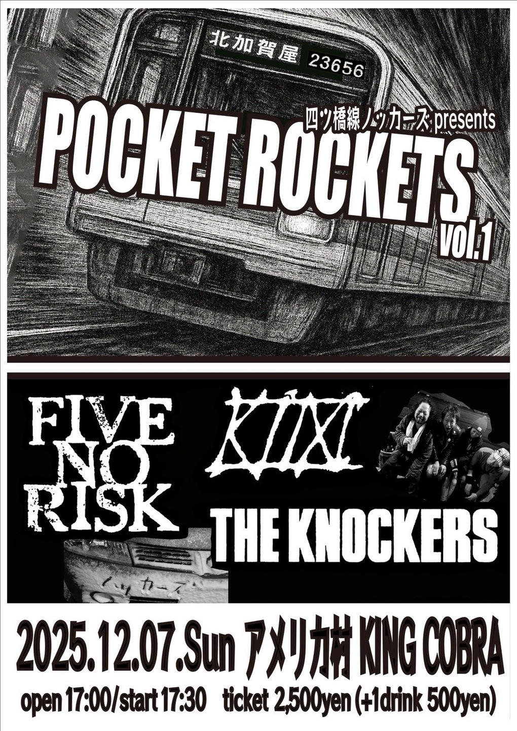 2025.12.7(日)@大阪 アメリカ村 KING COBRA 四ツ橋線ノッカーズpresents[POCKET ROCKETS vol.1]ライブ情報更新!